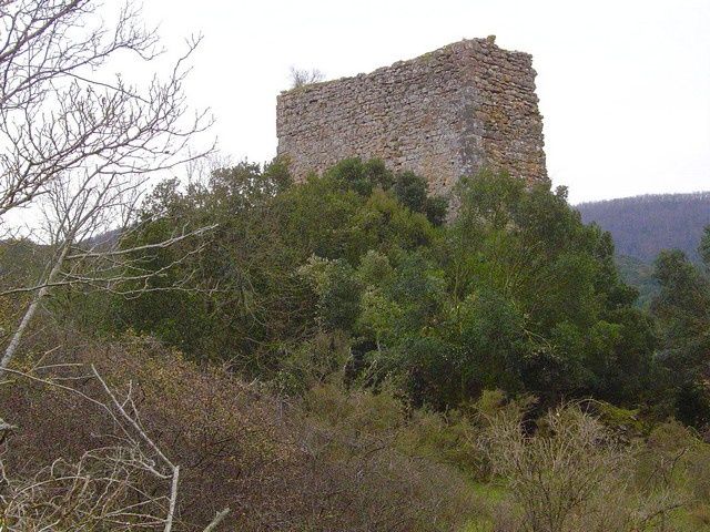 Le donjon au sommet, une construction isolée tente de survivre au milieu de la végétation. Cela ressemble à une grosse tour habitable et curieusement borgne. Je suis surpris de ne voir aucun rempart l'entourant, ni un vestige de fossé. Hélas pour cette tour, le temps a fait son travail de destruction et des pans entiers de murs ont disparu.