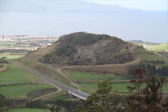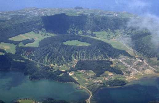 “Formação da Coroa da Mata (18 600±300 anos B.P. - Moore & Rubin, 1991). A Formação da Coroa da Mata, integrada na Sequência do Flanco Norte, terá sido responsável pela construção do cone de pedra pomes, bem como, na fase final da erupção, do domo traquítico da Coroa da Mata. Esta formação consiste num depósito espesso de pedra pomes de queda muito grosseira, muito rica em cristais de feldspato e anfíbola, com blocos que chegam a atingir 30 cm, rico em líticos com dimensões muitas vezes superiores a 50 cm, e que apresenta alternância de níveis muito grosseiros com níveis mais finos de cinzas, e o topo alterado em paleosolo”.