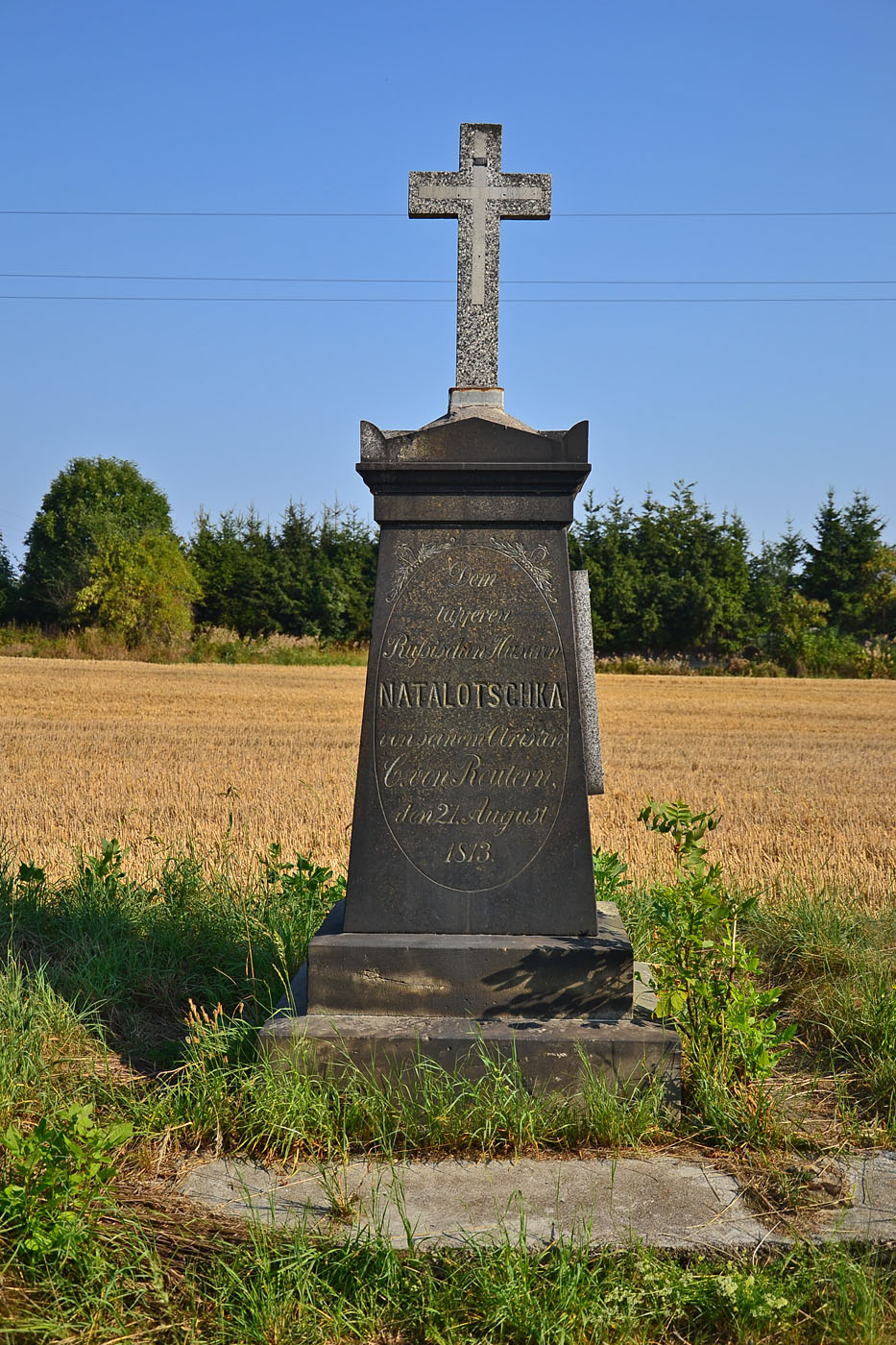 Pomnik ku czci rosyjskiego huzara Nataloczki ufundował w dowód wdzięczności pułkownik Christoph von Reutern. W miejscu w którym stoi obelisk, dzielny żołnierz osłonił pułkownika własną piersią przed francuską kulą. Wydarzenie miało miejsce 21 sierpnia 1813 r. Pomnik był restaurowany przez syna von Reuterna w 1879 r. i ponownie w 1972 r., kiedy to wtórnie umieszczono na nim kamienny krzyż.